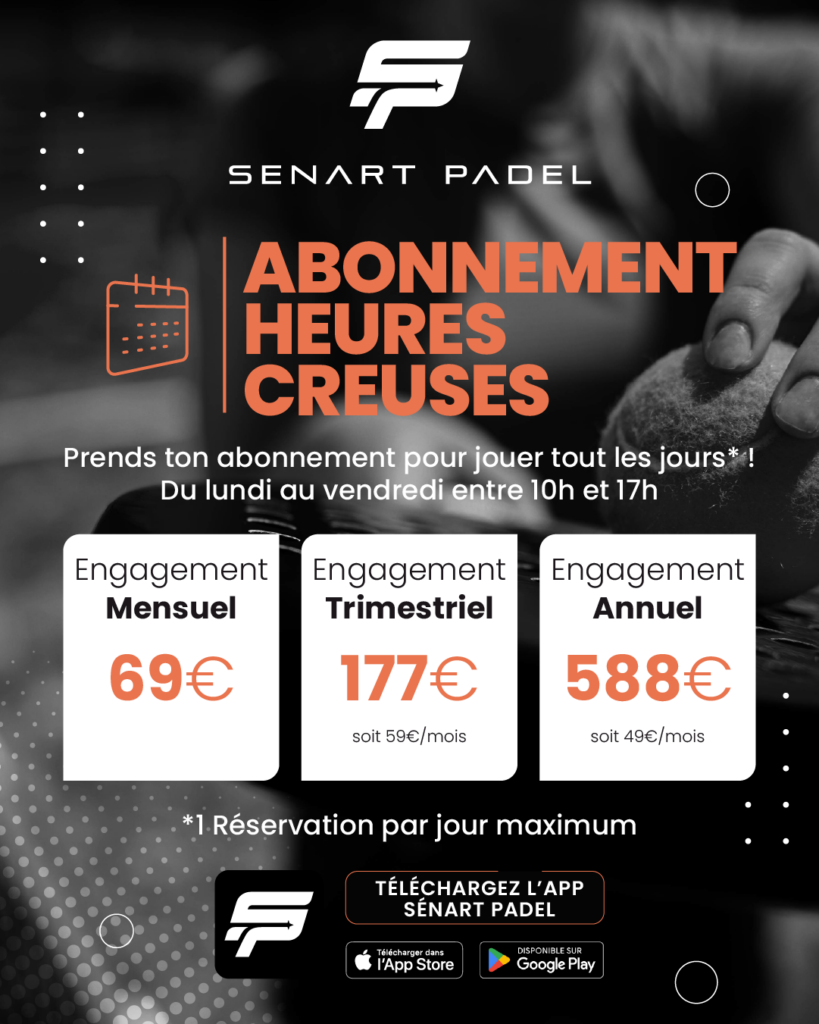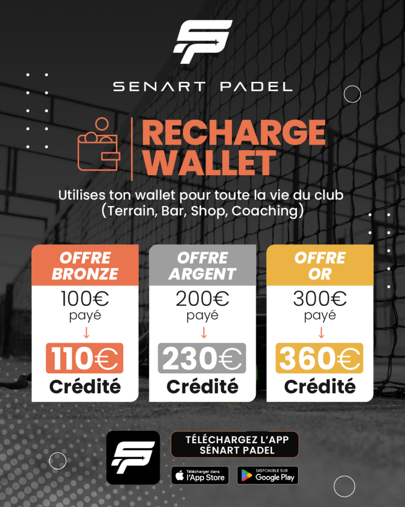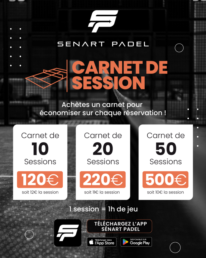 La réservation s’effectue via notre plateforme dédiée ou directement depuis l’application Sénart Padel.